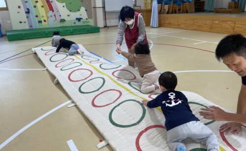 お部屋で、新聞紙遊びをしました! 新聞紙の感触や音にとても大興奮の子ども達でした! ...